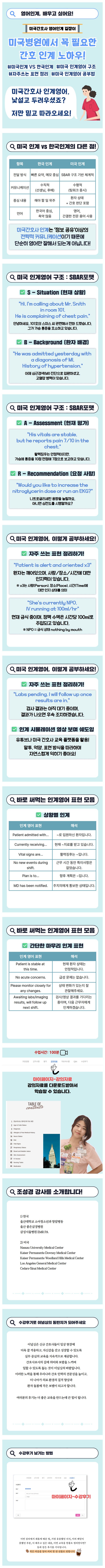 특히 이번 강좌에서는 미국 병원에서 실제로 사용하는 SBAR 인계 방식, 신규 간호사가 가장 어려워하는 전화 인계,콜백 응대까지 실제 사례를 기반으로 이해하기 쉽게 정리했습니다.